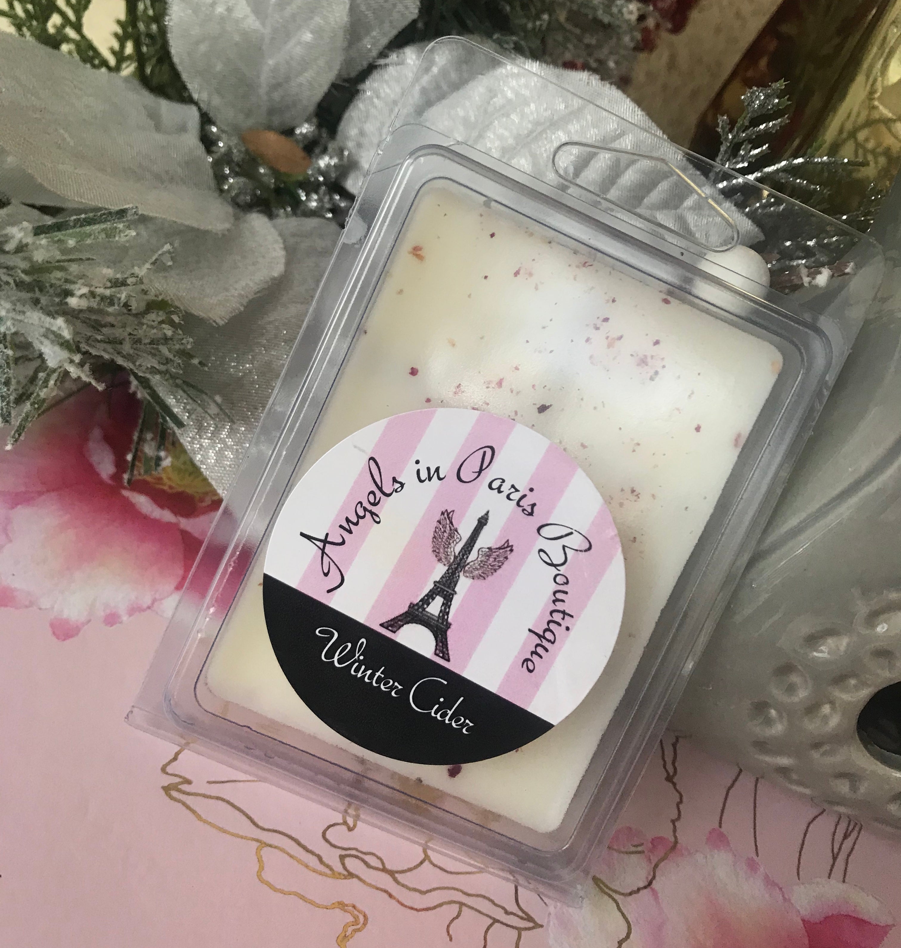 WINTER CIDER WAX MELTS 2.36 OZ -A cozy blend of apple and cinnamon. Imagine curling up with a warm cup of cider by the fireplace on a chilly winter night.